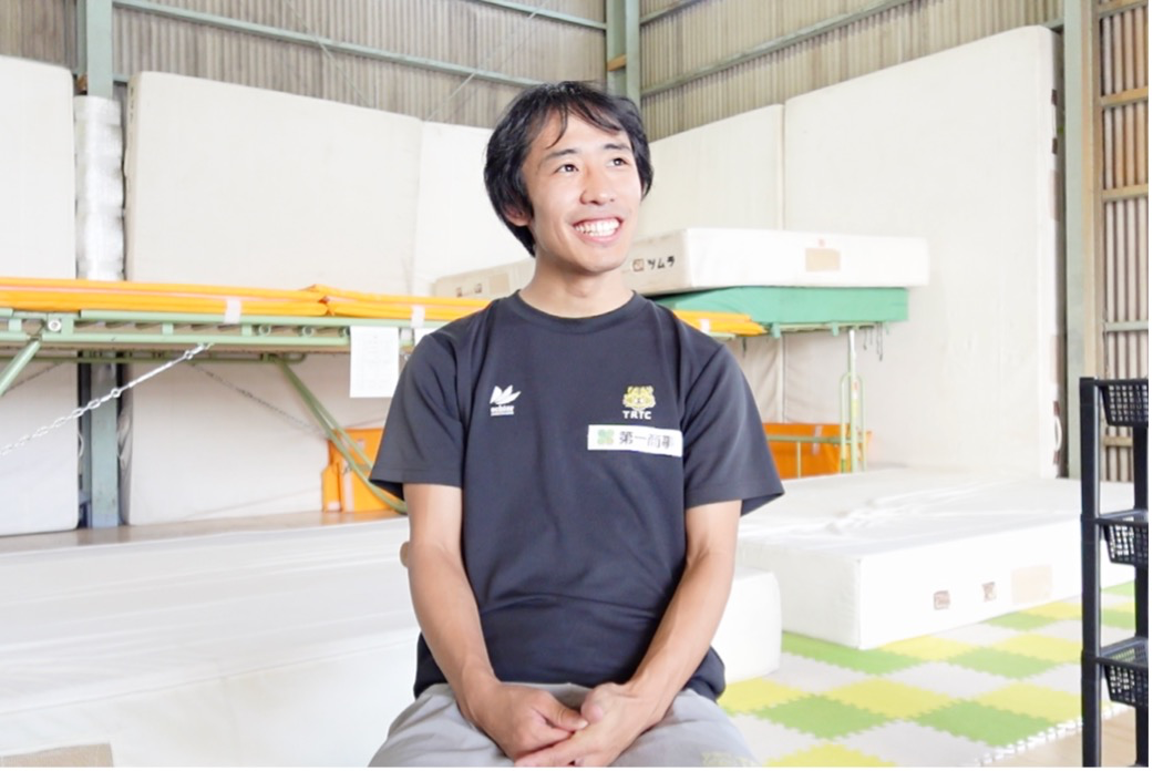 「トランポリン競技の全日本選手権が男女それぞれ65名ずつしか出場できないのですが、子どもたちを育成して、出場できる選手になってもらって、一緒に団体組むというのが、僕個人の選手としての今の目標です」