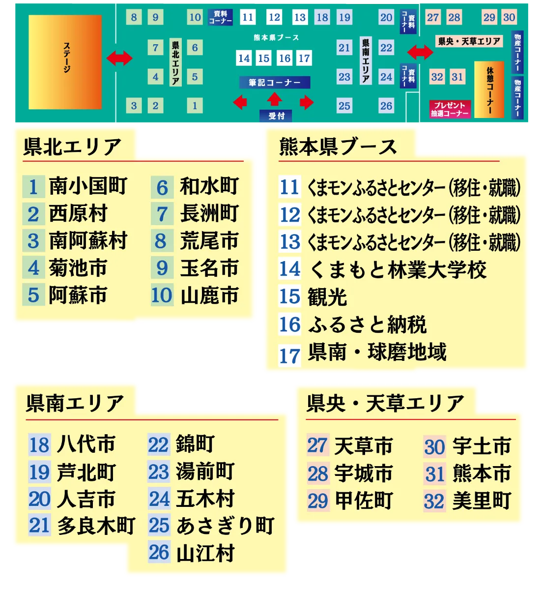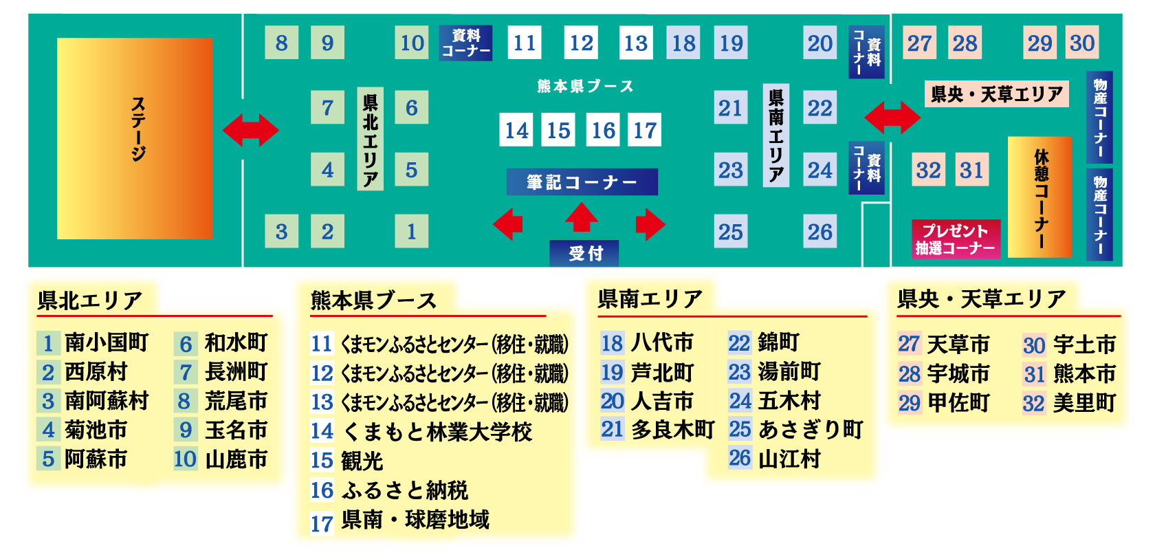市町村PRタイムや移住相談、シールラリー、物産コーナーなど、熊本県を満喫できるコンテンツが満載!