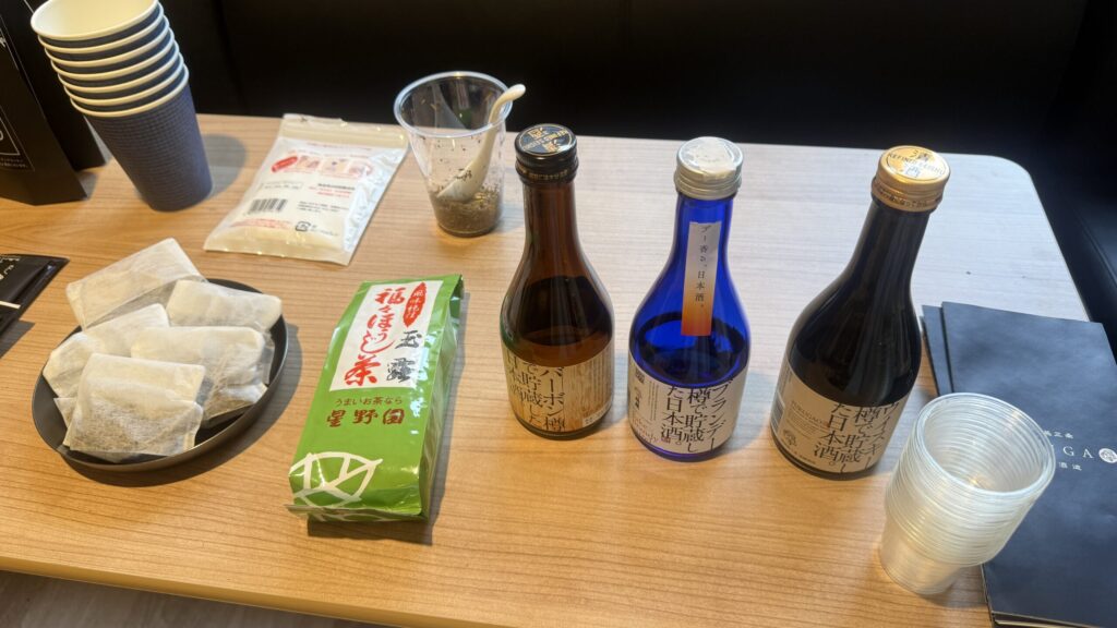 100年以上続くお茶屋「星野園」さんのお茶と、三条市唯一の酒造「福顔酒造」さんのお酒も