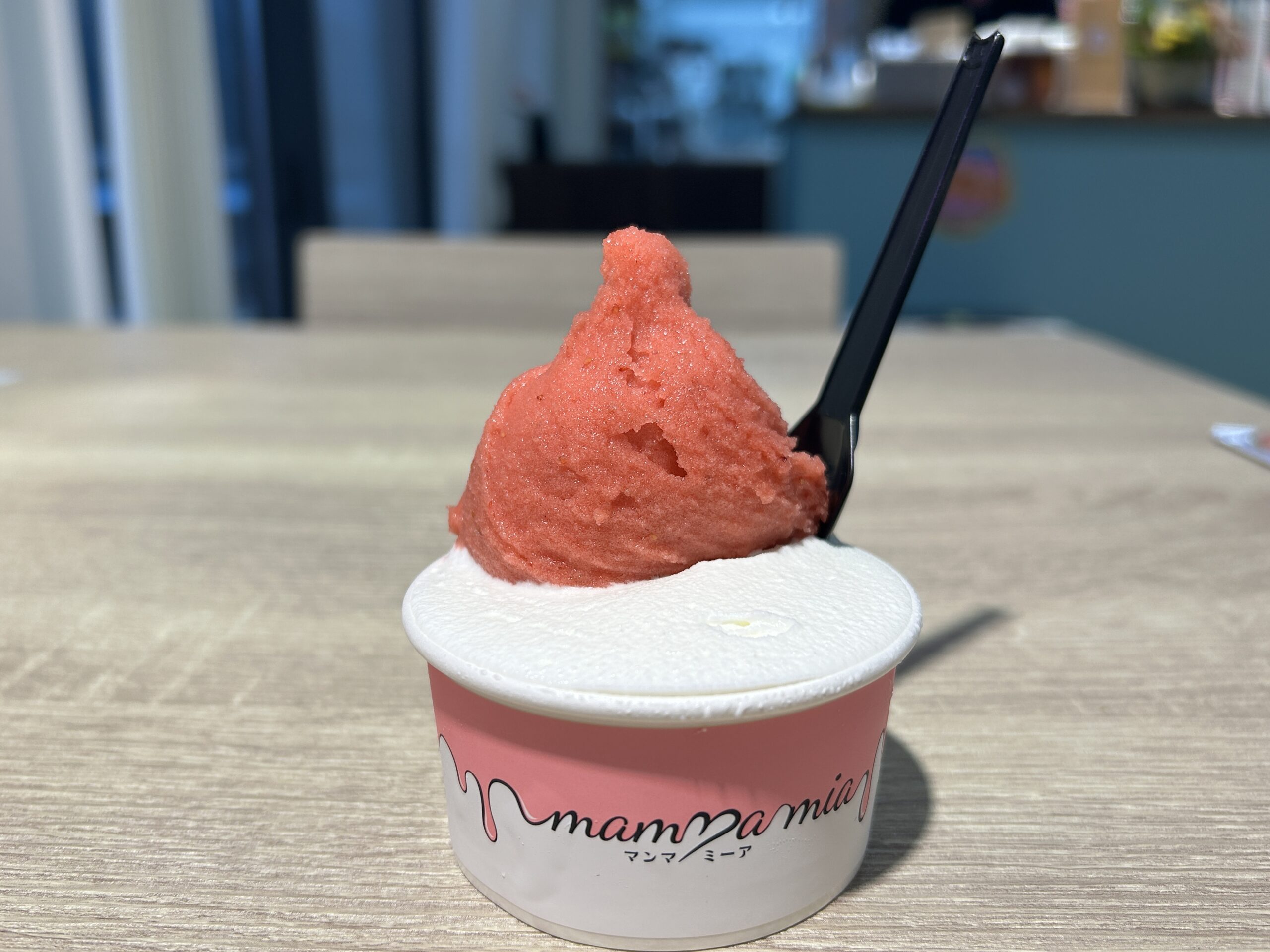 そのまま進んでいくと、見つけたのはジェラート屋さん「ジェラートショップmama mia(マンマミーア)」。季節は冬、だけどこの日は少し暖かかったので立ち寄ってみることにした。