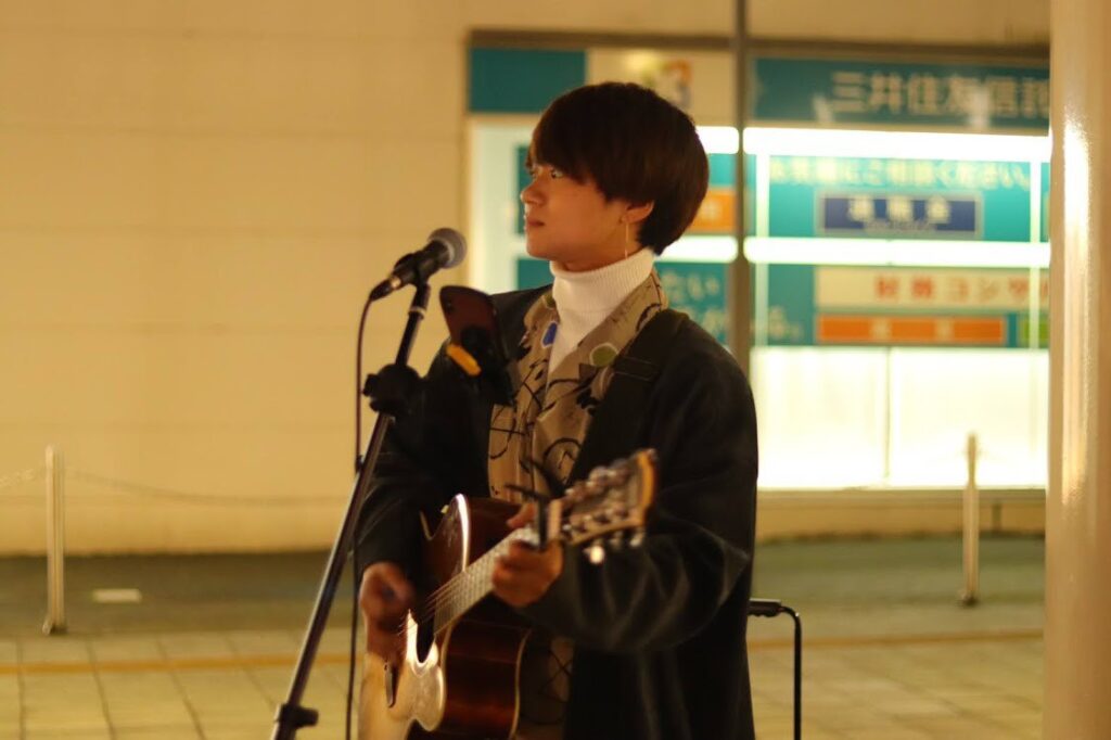 音源を使って始めた路上ライブも、今はギターでの弾き語りスタイルで行っている。