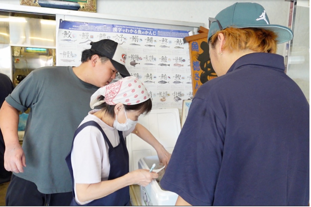 その他も魚を見て、店主と言葉を交わしながら仕入れていく。魚屋さんでの何気ないやりとりも、このまちで長く商売を続ける人同士の信頼関係を感じた。